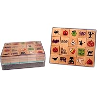 Buy 20 Piece Wood Mounted Rubber Stamp Set in Storage Case -Halloween
