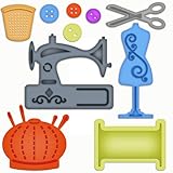 Please see customer image above for an example of a card where I used sewing maching, button, and scissors dies in this set to decorate a 'Thank You' card. This is a very adaptable set of dies for decorating your greeting cards, and I've used them for "Thank You," "Mother's Day," and "Birthday" cards, so far.