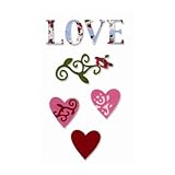 Product does not cut clean. You have to trim and pull out shards. Actual size in explanation would have helped me made a better purchase that I would have been happy with. I now realize that the size was the over-all size of the die not the size of cut out. I made about 20 hearts and ended up not using them because of rough edges. My falt for not knowing what a Sizzlits was. One of the small dies was blimhised slightly. This did not cause any damage just made me wonder if it was a second. I did like the letter cut outs and was very pleased with them. Packaging on this was not as great as other product I ordered. Bag was not sealed. Damp weather could be blamed for glue coming undone. It did come very early in reference to delivery date. That was great for me.