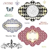 I purchased these to use with my wedding invites, they are wonderful and go very nicely if you layer the smaller design over the larger one (must cut out two separate stamps, or use Spellbinders Nestabilities labels 20 die cut set with a die cutting machine).Here are the sizes of the larger to stamps, with the circle shaped centers: