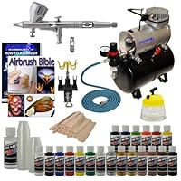 This kit really comes with everything you need to get started. Good selection of paint, quality hose and multiple connections, and a great airbrush. The airbrush cleaning container and holder come in handy for cleaning and storage. My only gripes come from the compressor that cuts off after 10 to 15 minutes of continuous use, and gets extremely hot. After doing some research, i've learned that this is an issue with all small compressors so if you plan on a ton of airbrushing I suggest you buy a compressor from a hardware store. My other complaint is of the lack of instructions for everything. Cleaning the airbrush requires a little more work that I hoped. If you don't clean it well, the needle will get stuck easily. Other than those minor issues, great set. Don't get frustrated if you don't immediately paint a masterpiece. Remember to start with dots, lines, and daggers. Then move onto shading. Practice and practice.Best Deals for COMPLETE MASTER AIRBRUSH KIT-Tank Air Compressor-Paint