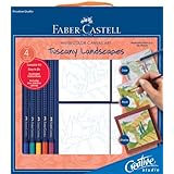 You get five pencils, a brush (about a size 6), five canvases (one is a "test canvas") and instructions.