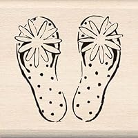 It's a nice stamp, but I have to say, I was a little misled. I was looking for baby footprint stamps and this popped up on the list. It was sold by Mom's Treasures so I figured it was what I wanted and I snatched it up (it was a good price too). Well let's just say I slapped myself upside the head when I opened the package. The stamp featured very adult-looking feet. I was a little disappointed because I got it for my fiance's grandma who's an avid and very talented cardmaker. She didn't have a baby footprints stamp and would've liked one, but I guess she can still use this in the summer time for more beach-oriented cards I suppose, or maybe even that Bible thing about the footprints. I'm sure you've all heard it. "When you saw only one set of footprints, it was then that I carried you."Anywho, I guess the stamp can be used for many types of cards or whatever you wanna use it for, so if you thought this stamp was something else too, don't worry, it still has a purpose.