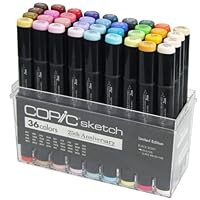 Great set, great grouping of colors, I liked the fact that they include the fine point, and the brush, which is different from the usual Sketch marker.Honest reviews on LIMITED EDITION COPIC 25th ANNIVERSARY SKETCH PEN SET 36 PENS