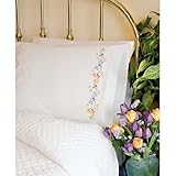 These pillowcases were easy to work. No complicated stitches. Soft Cotton thread count. Finished both of them in under a month just working on in spare time. Car rides, waiting for laundry and relaxing. Whimsical print but not too childish. Color guide included but feel free to change up colors to match your sheet set. Didn't want yellow in it so changed it up to be pink, blue and purple. Fun project. Will buy more Dimensions brand Needlecrafts.