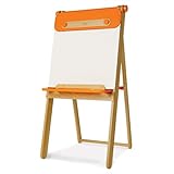 This was a gift for a child with a small room. This is an incredibly sturdy easel, beautifully designed with a bar on the back for rolled paper (not included). The choice was made because this easel does not have a large footprint but is very sturdy. It can be closed to lean against the wall (still attractive) and can even be used while leaning. Note that it comes assembled but for the flat pieces, in very large box.