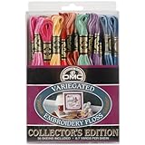 In general, I prefer to order these one skein at a time, because they are a wonderful solution for adding some zest to a monochrome design. However, I do not have access to these colors in person. Ordering the DMC variations sets allowed me to have a general library of floss on hand so that I can do floss tosses on my selected fabric and make choices about what colors to use on those designs.