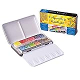 And, Sennelier colors are first rate. My only con is that I wish they had included a second, deeper and warmer transparent yellow. However, I bought one open-stock and popped it in the middle row. There's still plenty of room there for a collapsing, "folding", travel size 4 Kolinsky sable brush. (Can't say that about all other travel boxes. My Bijou came with a uselessly tiny brush.)