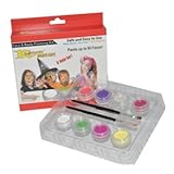 These paints worked very well for painting kids' faces ages 2.5-7. We bought two packages, for about 10 kids, did most with full faces and we have enough to do another party.Two things to mention: