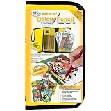 It's a great thing for kids, I'm sure. However, there's no way for adults to make something nice with this kit. Break out the better colored pencils, ladies, cause these have too much wax for this type of paper (board). The color does not transfer on well, and does not cover up the lines either the white is useless for covering the pre-printed lines.That said, it's a nice case get a different color though, because the pencils marked up the inside of my case really badly, before I ever received it probably from shoving the sharpened pencils in, and the tips dragging on the fabric. It's a pretty nice case though, no eraser but does come with a sharpener and pencils.
