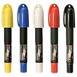 I usually prefer Sakura Solid paint markers, but these are just so great for the money. I have tried them on all surfaces and they all show up great... The yellow and white are pretty much the same as Sakuras, just smaller. That's the only downside... They are a bit small than other paint sticks.Best Deals for Uchida 247-5A Decocolor ID Solid Stick Paint Pens, Assorted Colors