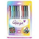 These pens are really cool. They are more dark hued than the normal glaze pens set. The red and the dark blue are fantastic.They're raised, but not al lot. However, they're raised enough to give a cool effect. Also they,re kind of watery right out of the pack and take a little warm up time before a lot of pigment starts coming out. These are also the only Sakura pens to my knowledge that can blend without killing the pen. I was worried that they would dry too slow for my purposes (I study with gel pens) but these pens dry within one or two minutes at most. My only gripe is that they can sometimes look like plastic.