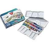 The only reason I give it four stars and not five is that I've found that while the thumb loop (the blue, rubbery part of the case when you look at it from the outside) is handy and a great idea, it's only really useful if you hold your hand like you would if you were holding a glass palette (palm up, thumb across palm) while I really wanted to hold the set on my thumb while I gripped the side of my sketch book for stability. While it worked when I used the set this way, it did cause the palette to tilt a lot and it doesn't lay flat in that configuration so I ketp accidentally spilling the washed out of the mixing pans.