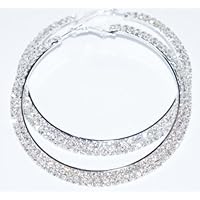 Best Deals for Dazzling Silver Tone 2 Row Crystals Rhinestones Hoop Earrings 50mm