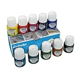 Be aware that the colors listed might not be the colors received. When I ordered these for a class, the colors listed were titanium white, ultramarine blue, buttercup, emerald, lemon yellow, black, oriental red, vermilion, parma violet and cobalt blue. The colors I received were emerald, lemon yellow, black, parma violet, cobalt blue, moss green, fawn, fuchsia, turquoise and cardinal red. After a few internet searches, I think the difference between what colors were listed in the set and what colors I received was a change in what the manufacturer includes in the color selection for the set, now. It appears the colors listed were the old version of the set, and what I received was the new version of the set. Unfortunately, I needed four of the colors in the old version for a specific class project. Per Amazon, they will be changing the listing to reflect the colors now in the set, but as of this writing they haven't yet done so. I've no idea if their stock contains both sets or not. I'm sure I'll use all of the paints I received, on other projects, I just had to order individual bottles of the other colors I needed from another source for the class project.
